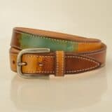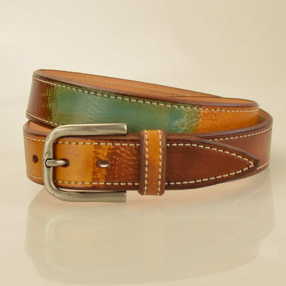 Camouflage belt for man and woman, genuine vegetable leather , Colored brush and finishing handmade,machine stiching on edge, 35  mm, Multicolored Faggio. Old Nickel Zamak alloy made in Italy, buckle, with stitching machine , one loop.